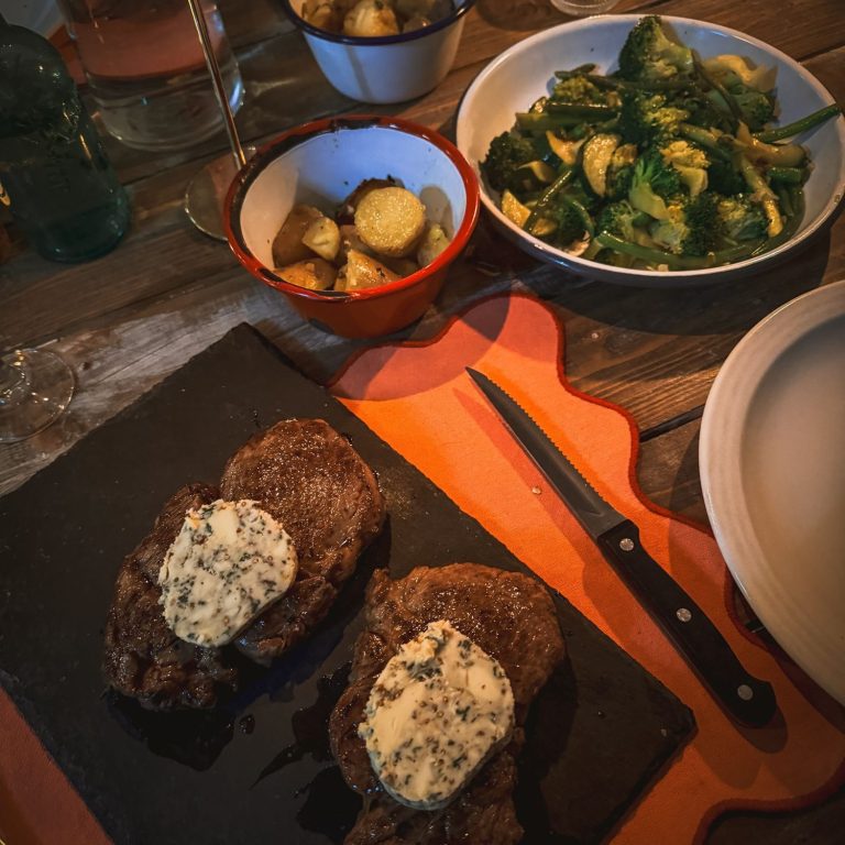 There’s something about being wrapped up, a bit windswept, with tired dogs at your feet, eating incredible food cooked over fire… it just hits differently.
